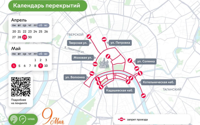 Утром 9 мая, начиная с 5.00 утра, перекроют сразу 12 набережных: Гончарная, Садовническая, Москворецкая, Кремлевская, Котельническая, Устьинская, Подгорская, Софийская, Раушская, Болотная, Кадашевская и Пречистенская.